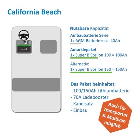 Der VW California ist seit langem das Synonym für den kompakten, alttagstauglichen Campingbus. Mit einer Vielzahl von Modellen und Optionen kann der California an die Bedürfnisse des Nutzers angepasst werden. Allerdings ist es z.B. nicht möglich den California ab Werk mit nützlichen Features wie einer Solaranlage oder einer Bear Lock Getriebesperre zu bestellen. Evtl. hat auch der Vorbesitzer, bewusst oder unbewusst, keine Luftstandheizung mitbestellt? Wir bieten euch die Möglichkeit euren VW California nachträglich noch mit diesen nützlichen und sinnvollen Optionen auszustatten.